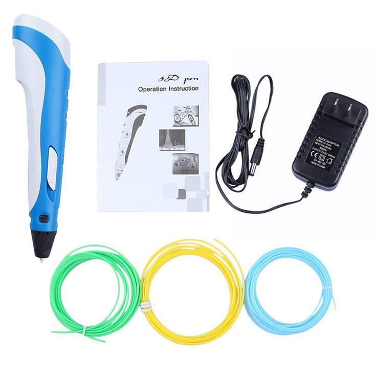3D Drawing Printer PenExtrusion mode:MeltingFormation:3DDrawing margin:NoneWidth of extrusion:ManualMaterial used:ABS PLSDiameter of material:1.75mmSpeed of extrusion:adjustableNozzle hole size:0.7mmTheological extrusion quantity:0.076-0.86m per minute.AdjustableMelting temp of material:ABS(210-235ºC) PLA(160-210ºC)Adapter current:110V-240V 3APen electric spec:DC12V 2A 24WThe DC head diameter:5.5mm*2.2mmPen size:184*31*46mmWeight:65g